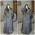 عباءة بثوب قطيفة ل سلسلة امامية تفتح على طول الفستان وجيوب