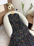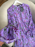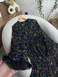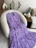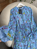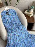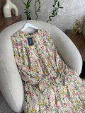 فستان بثوب موسلين كريب مستورد مع دوبلور مريح لفصل الربيع على طول الفستان والأكمام كذلك